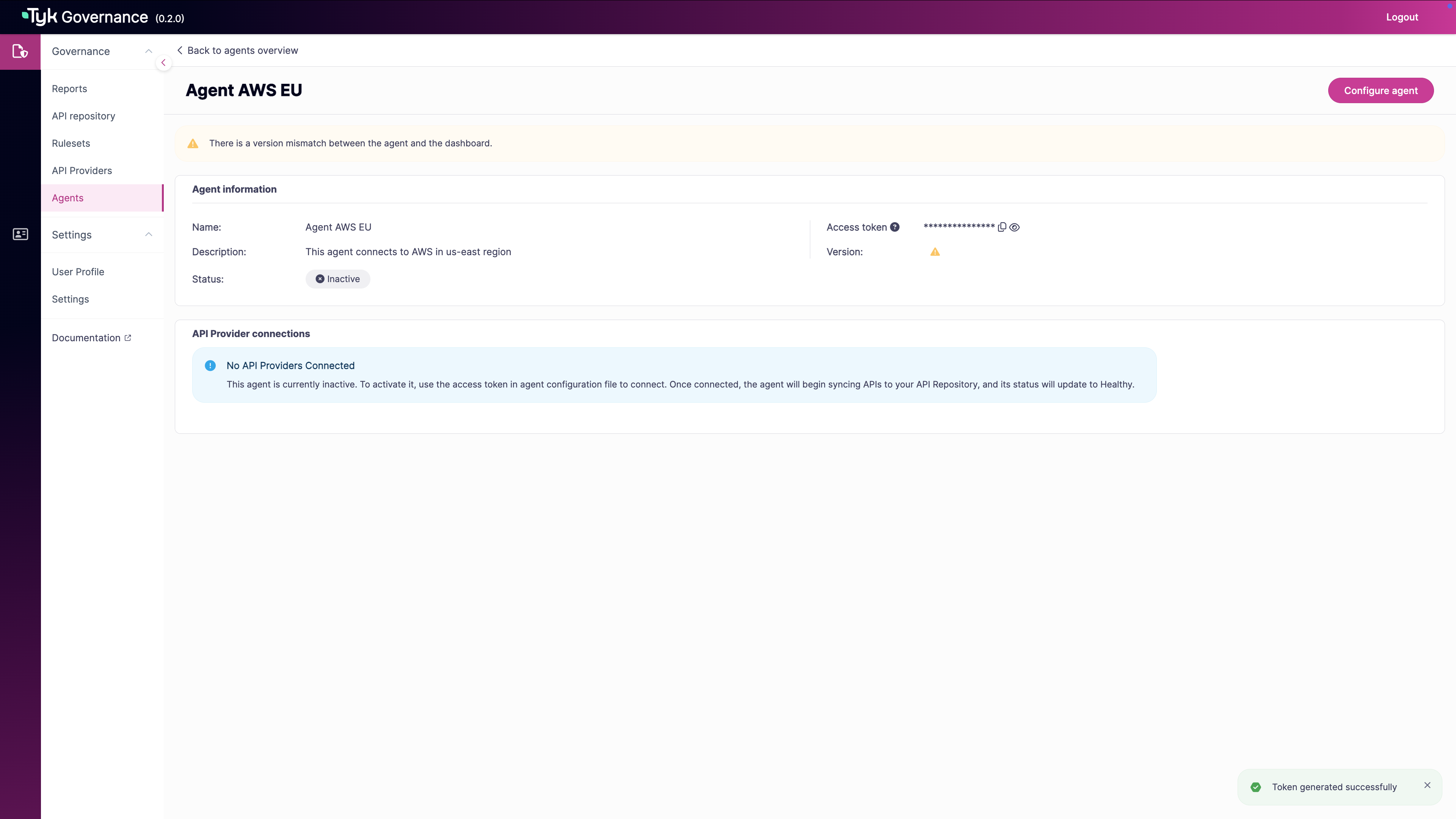 Now you can generate an access token for the agent.